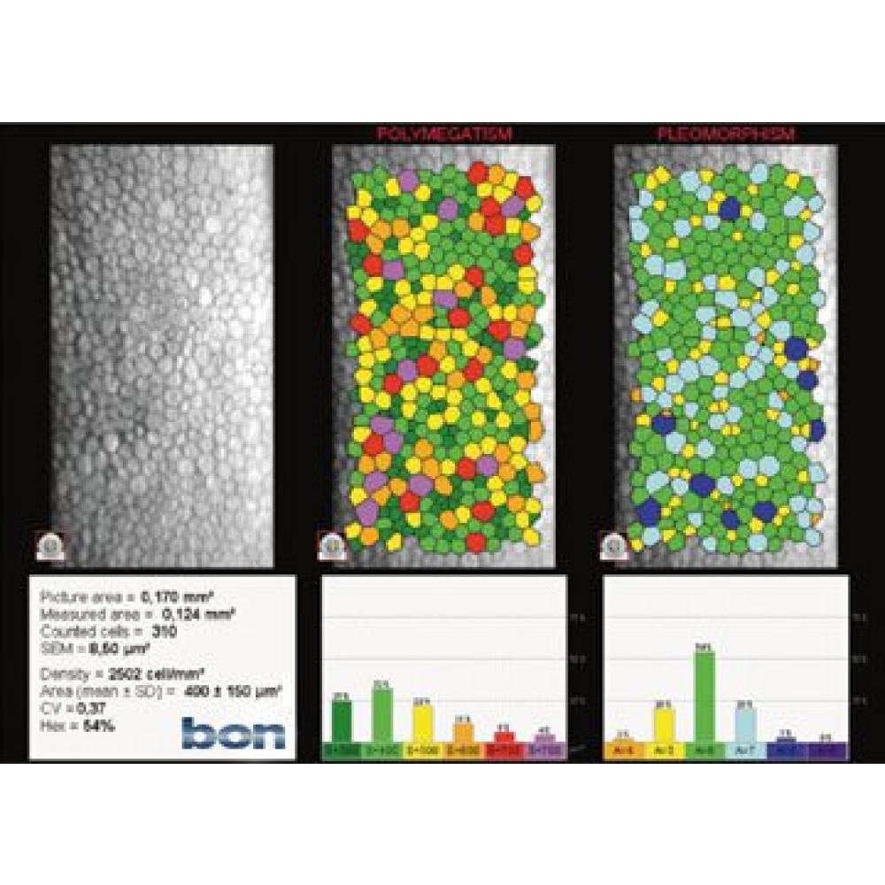 - the wide measurement area makes it possible to count up to 300 cells (average value on normal eyes) and enables the analysis software to get a reliable cell density along with the analysis of cell size and shape.