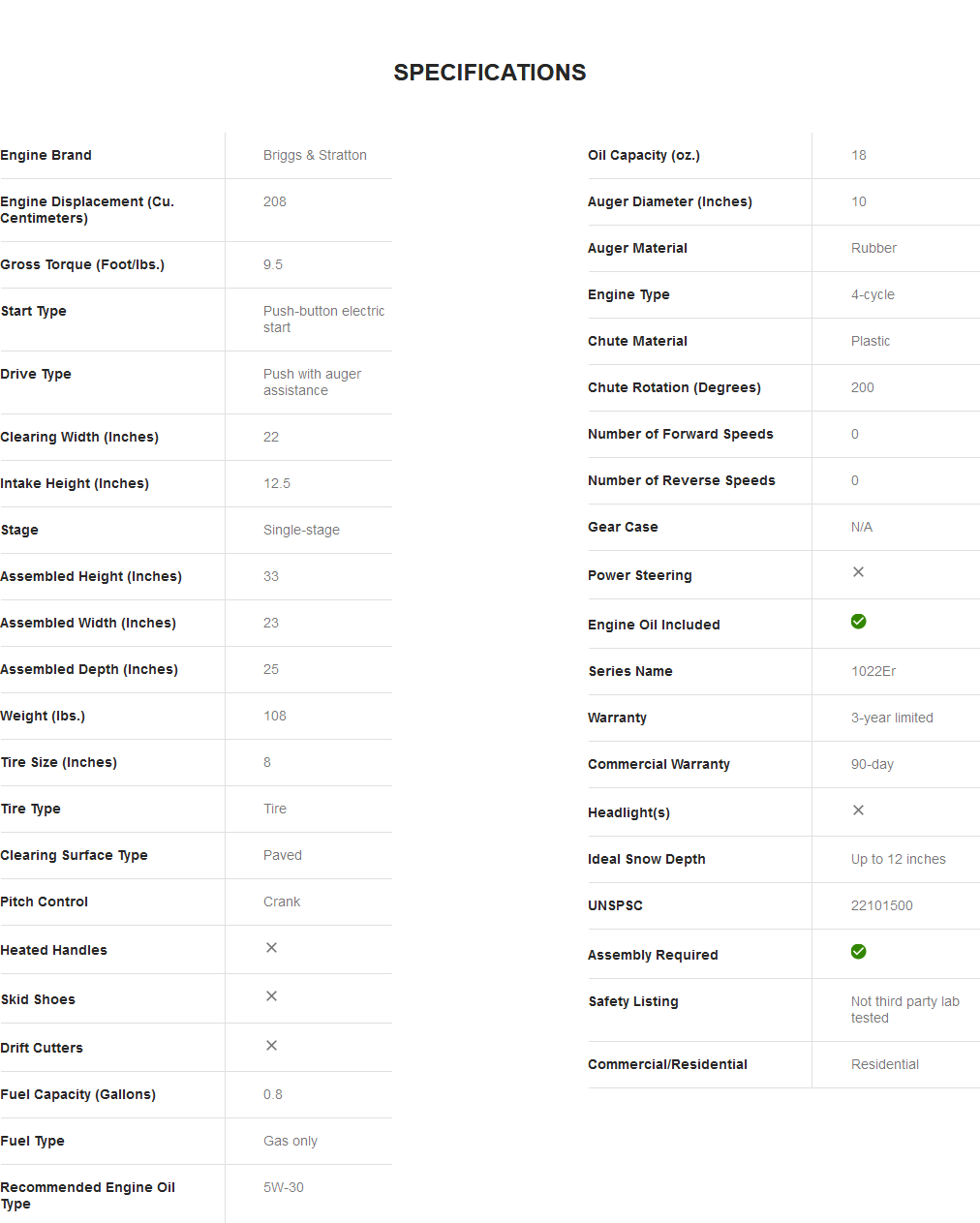 Briggs And Stratton 1022ER 22-in 208-cc Single-Stage with Auger Assistance Gas Snow Blower with Push-Button Electric Start