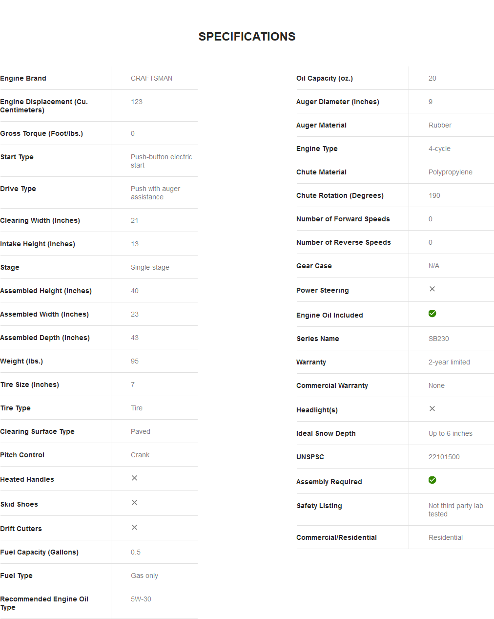 CRAFTSMAN SB230 21-in 123-cc Single-Stage with Auger Assistance Gas Snow Blower with Push-Button Electric Start