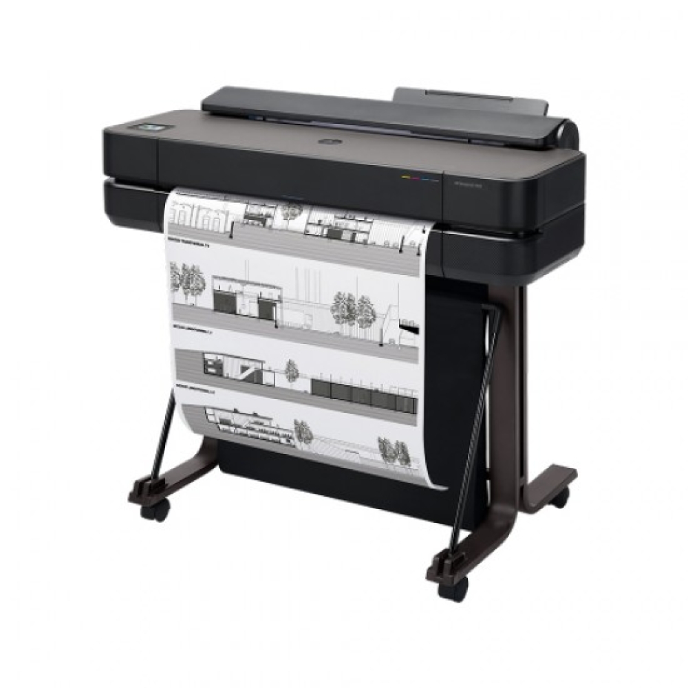 HP DesignJet T650 24-in Printer, printer stand, automatic sheet feeder, roll cover, printhead, introductory ink cartridges, spindle, quick reference guide, setup poster, power cord