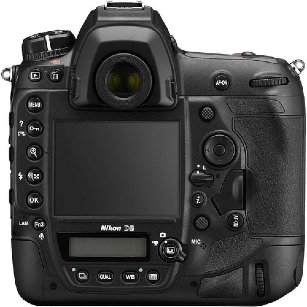 The peak of Nikon DSLR lineup, the D6 is a no-holds-barred camera with a focus on speed, performance, reliability, and precision. Adept in both photo and video realms, the D6 revolves around a 20.8MP FX-format sensor and an EXPEED 6 image processor that enables an impressive 14 fps continuous shooting rate, a native sensitivity Range from ISO 100-102400 (expandable up To ISO 3280000), and UHD 4K video recording at 30 fps. When working with stills, a revised high-density Multi-CAM 37K autofocus system features 105 cross-type points that improve focusing precision and speed, and with 1.6x greater frame coverage, the need To recompose while shooting is greatly reduced. This focusing system also works with 17 customizable Group Area AF patterns To suit working in cluttered or busy scenarios or with fast-moving subjects.
