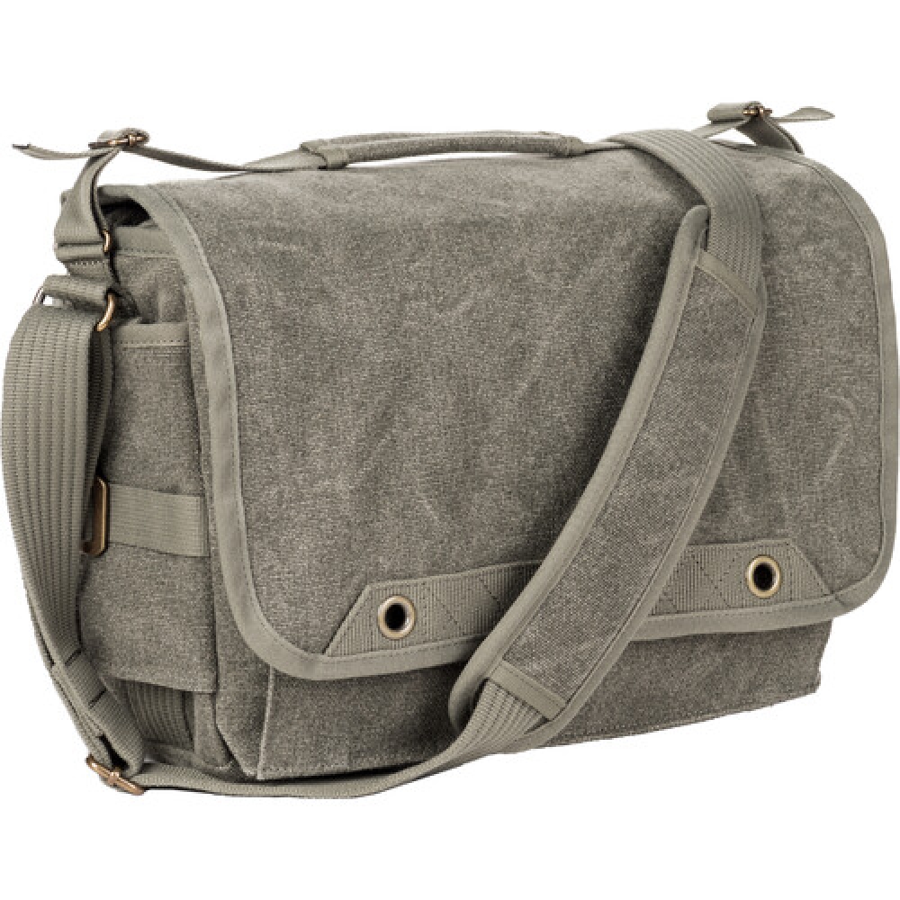 The bag is made of durable cotton canvas that has been treated for water resistance. It has a large flap with dual turn buckles to keep it securely closed and an interior nylon lining padded with closed-cell foam for protection. The main compartment has padded touch-fastening PE-reinforced dividers for organizing your gear. A large pocket under the flap will hold and organize memory cards, cables, your wallet, keys, and other smaller gear.