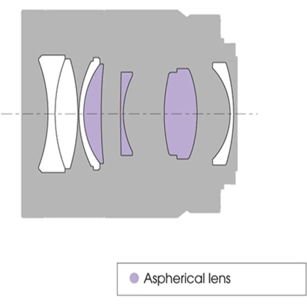 • Three aspherical elements, including two double-sided, are incorporated in the lens design to reduce astigmatism, field curvature, coma, and other monochromatic aberrations.