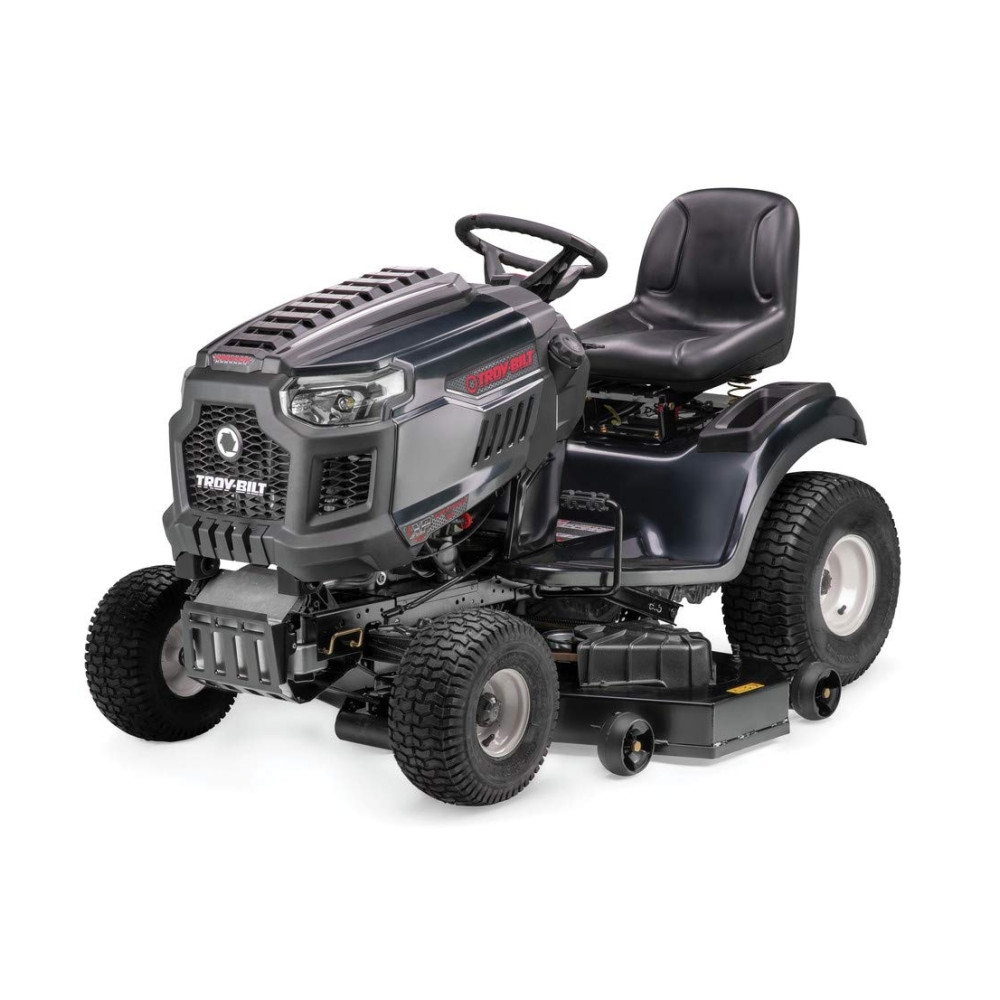 The Troy-Bilt XP™ Riding Lawn Mower is built tough, with a commanding twin cylinder 679cc Troy-Bilt Engine featuring electronic fuel injection, and a 50in.W fabricated cutting deck that has 12 adjustable cutting heights. This mower is equipped with Hydrostatic transmission to provide smooth, responsive control.